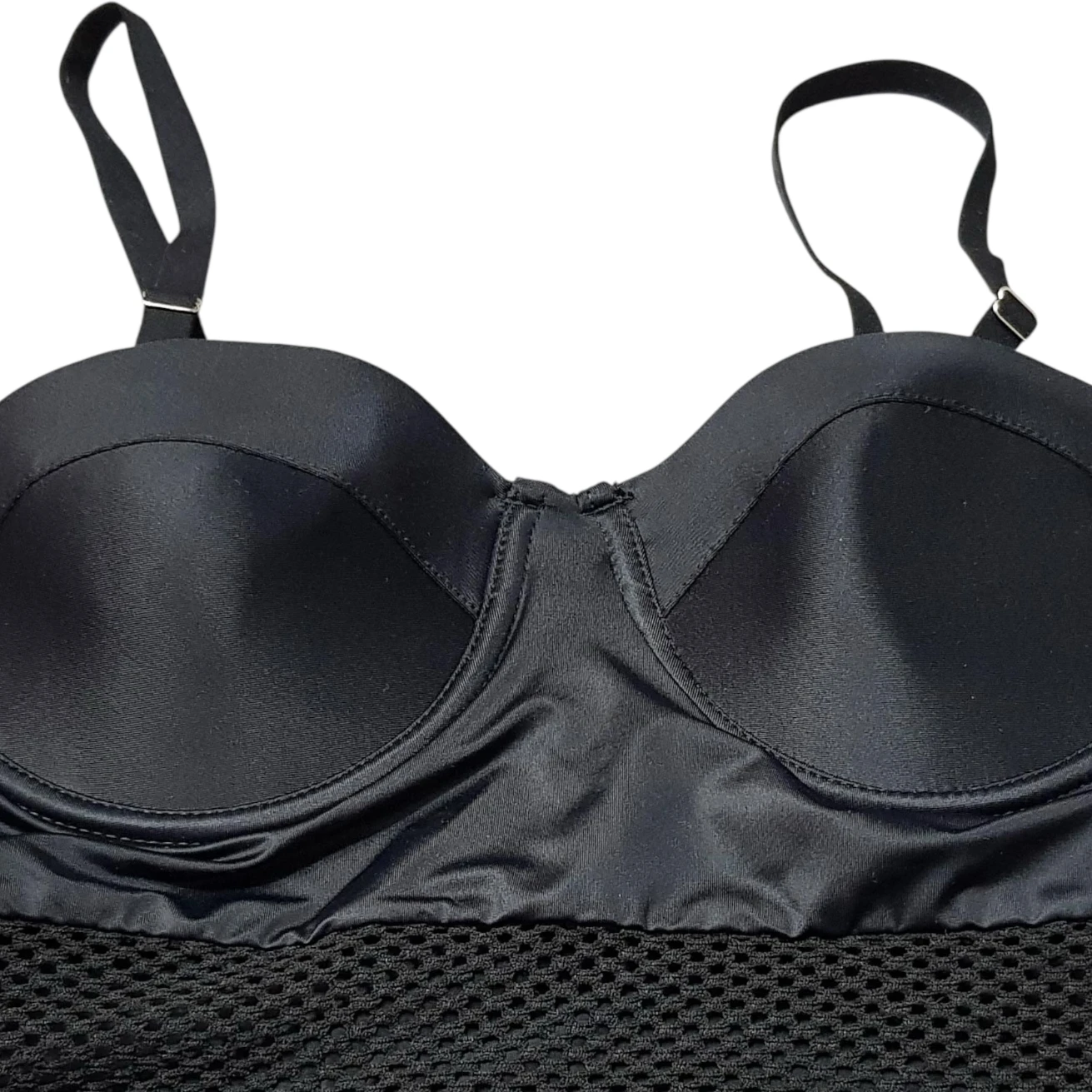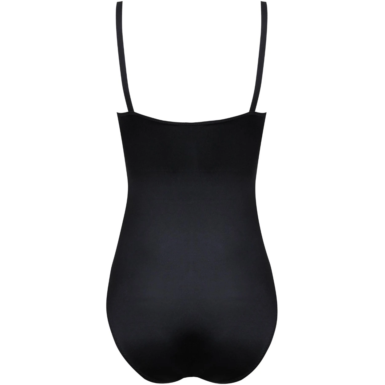 مایو زنانه یکتکه مشدار مشکی با طراحی فرمدهنده و بند قابل تنظیم است.